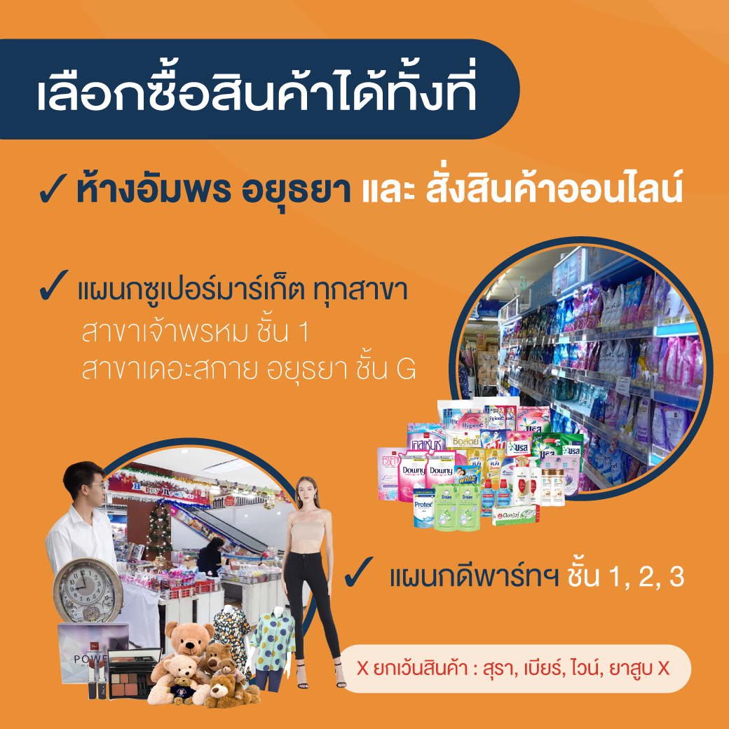 เลือกซื้อสินค้าได้ทุกสาขา ทุกแผนก ทุกช่องทางของห้างอัมพร อยุธยา ตั้งแต่วันที่ 1 มกราคม – 15 กุมภาพันธ์ 2566